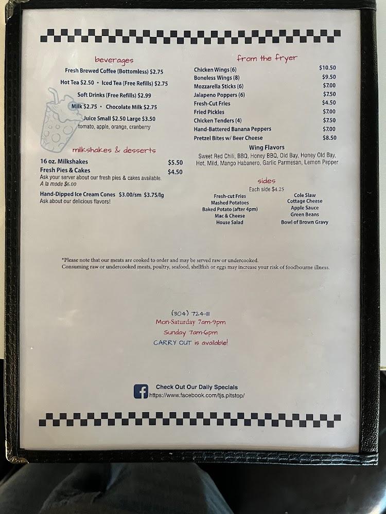Welcome to TJ's Pit Stop, your cozy neighborhood diner located at 3511 Berryville Pike, Charles Town, WV. We invite you to indulge in our delicious homestyle American fare, showcasing comforting classics perfect for breakfast, lunch, or dinner. Our warm, family-friendly atmosphere is ideal for groups and solo diners alike. Enjoy our excellent coffee and local specialties while you relax in a calm setting. With accessible amenities and friendly service, TJ's is the perfect pit stop for everyone. Plus, stay tuned for our upcoming alcohol offerings and video lottery! Experience true comfort food with us today!
